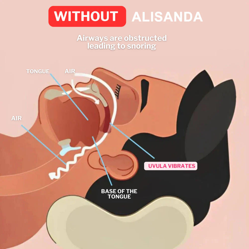 Snoring happens when the muscles in your throat relax during sleep, narrowing your airway and causing vibrations. The ALISANDA Anti-Snoring Mouthpiece solves this naturally and effectively.